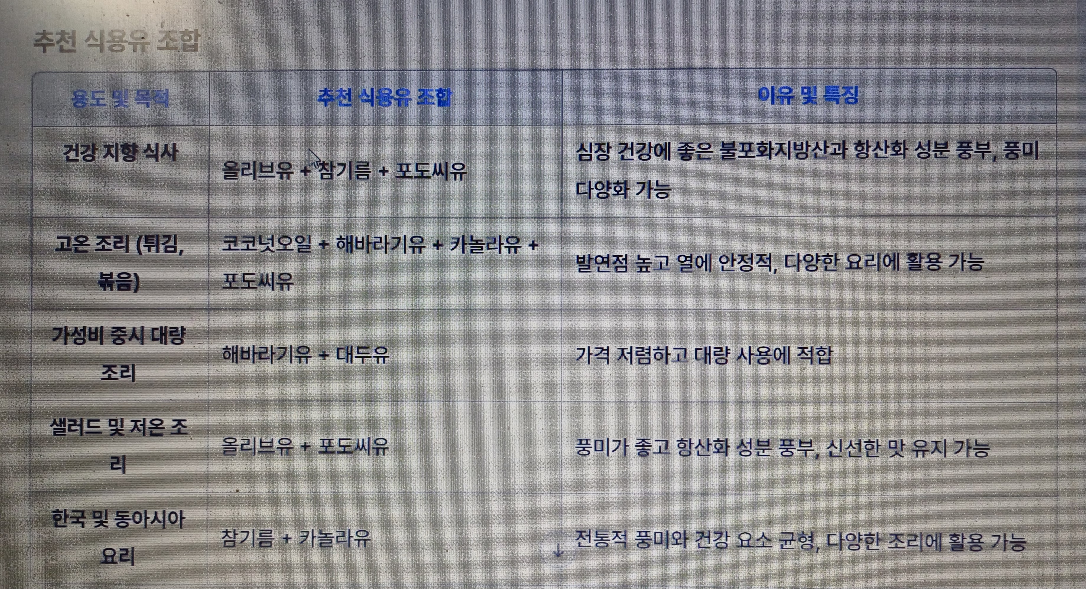 □ 결론: 당신의 주방에 맞는 식용유를 선택하자!